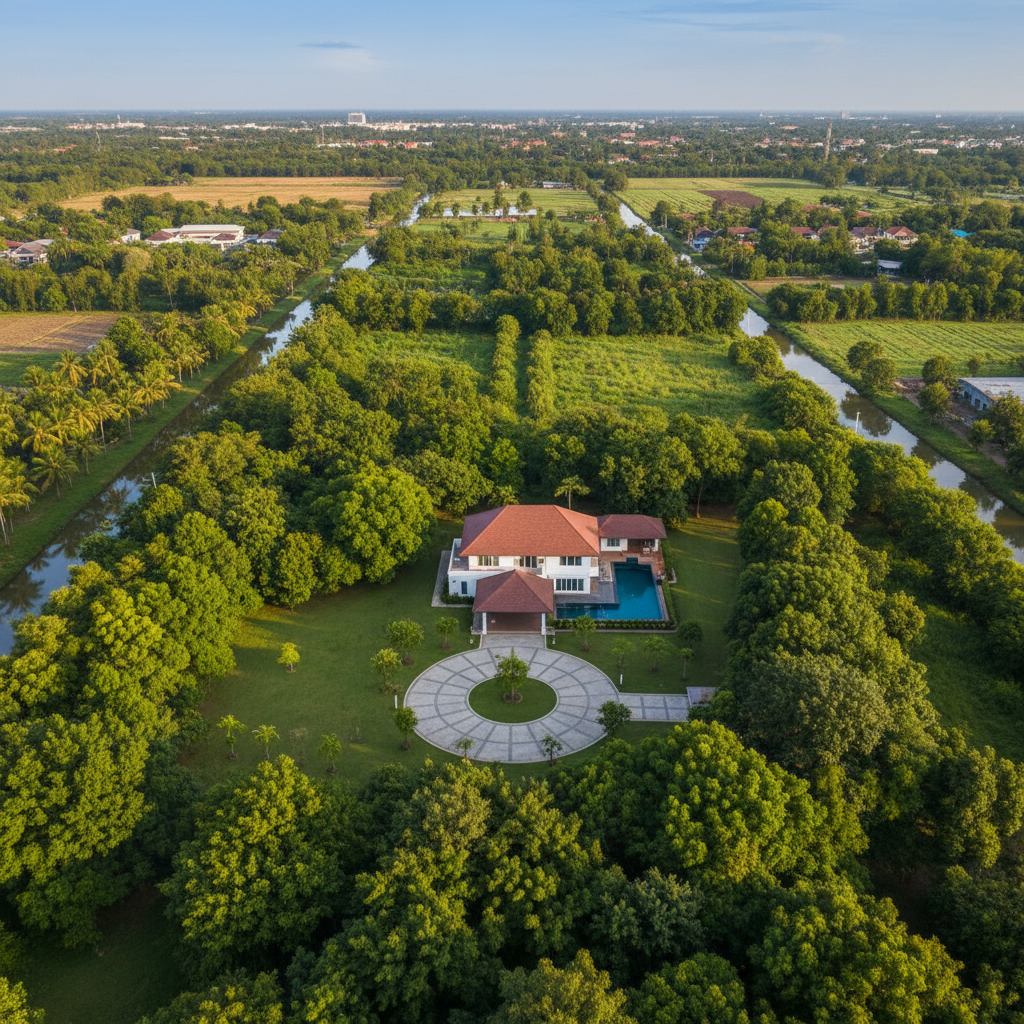 Discover your dream family home at Bang Na Grand Family Villa, an expansive 5-bedroom luxury residence nestled in a peaceful, tree-lined enclave of Bang Na. This magnificent house offers unparalleled space, comfort, and privacy, making it an ideal sanctuary for multi-generational families. The property boasts a grand entrance leading to multiple living areas, including a formal lounge, a cozy family room, and a spacious dining area perfect for hosting gatherings. The design thoughtfully integrates traditional Thai elements with modern luxuries, creating a warm and inviting ambiance throughout. Step outside into your private oasis, featuring a meticulously landscaped garden, a sparkling private swimming pool, and a generous terrace for outdoor entertaining and relaxation. The property includes both a fully equipped Western kitchen and a traditional Thai kitchen, catering to diverse culinary preferences. With ample covered parking for multiple vehicles and 24-hour security in this exclusive community, every aspect of family living has been considered, ensuring both convenience and peace of mind. Located in the rapidly developing Bang Na district, this villa offers easy access to leading international schools, mega shopping complexes like Mega Bangna, prestigious golf courses, and major transportation links, including the Eastern Outer Ring Road and BTS Skytrain. This prime location, combined with the property's luxurious features and generous proportions, makes it a sound long-term investment for families seeking a premium lifestyle outside the immediate city bustle, yet still within reach of all urban amenities.
