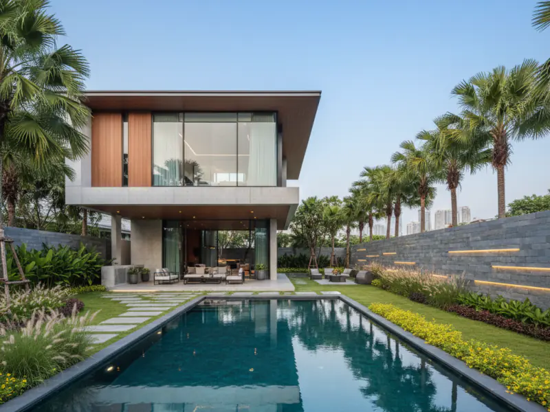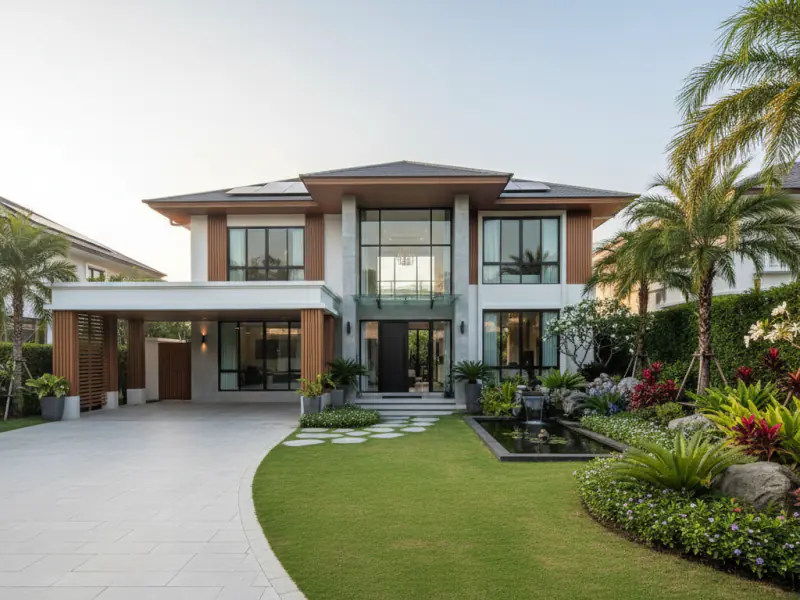 Presenting 'The Grand Resort Villa,' an exquisite 5-bedroom, 6-bathroom private residence offering resort-style living in the sought-after Bang Na district. This expansive and luxurious home is designed for those who appreciate grandeur and comfort. It features a gourmet Western kitchen, fully equipped with high-end appliances and a large island, perfect for culinary explorations. The generous open-plan living and dining areas provide ample space for relaxation and entertaining, all while being cooled by state-of-the-art air conditioning. Each of the five bedrooms is a lavish suite with its own en-suite bathroom and elegant built-in wardrobes, ensuring ultimate privacy and convenience. The true highlight of this property is its magnificent outdoor living space. A sprawling private swimming pool is the centerpiece, surrounded by an immaculately landscaped tropical garden, creating a serene and picturesque retreat. Multiple terraces offer perfect spots for sunbathing, outdoor dining, or simply enjoying the tranquility. With covered parking for several vehicles and robust security systems, every detail has been considered for a comfortable and safe lifestyle. Located in a prime Bang Na enclave, the villa offers excellent access to world-class golf courses, premium shopping at Mega Bangna, international schools, and major expressways connecting to the city center and Suvarnabhumi Airport. This villa is an exceptional investment opportunity, promising a luxurious family lifestyle and significant capital growth. The sheer size of the land and interior, coupled with its high-end finishes and desirable location, make it a valuable asset in the Bangkok real estate market. Available under Thai Ownership, it ensures a smooth and secure transaction for local buyers. Whether you seek a permanent family home or a prestigious holiday retreat, this property offers an unparalleled blend of luxury, convenience, and long-term investment potential.